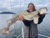 September 2016 Sandra mit einem Dorsch von 9 kg und einem guten Seelachs