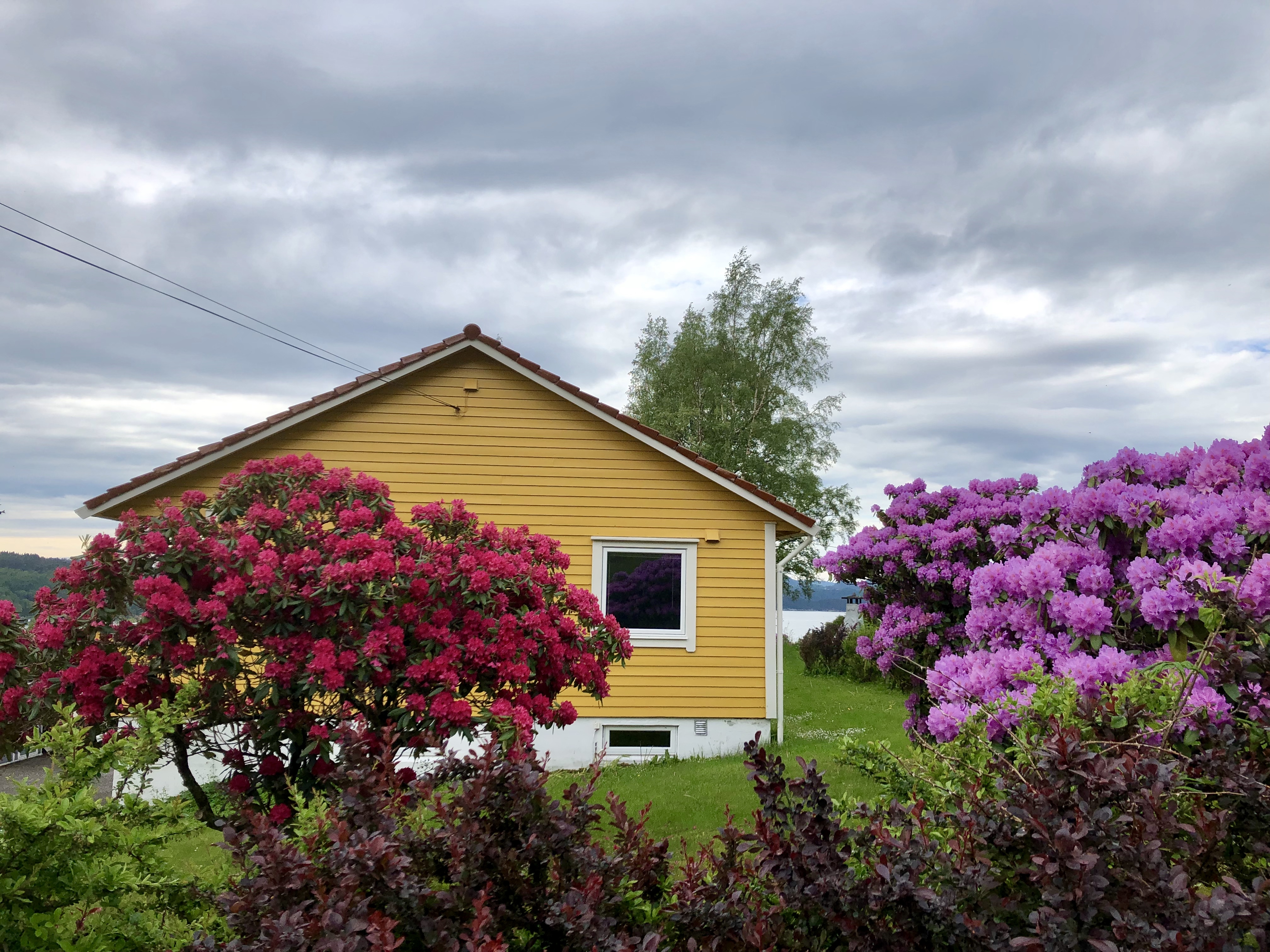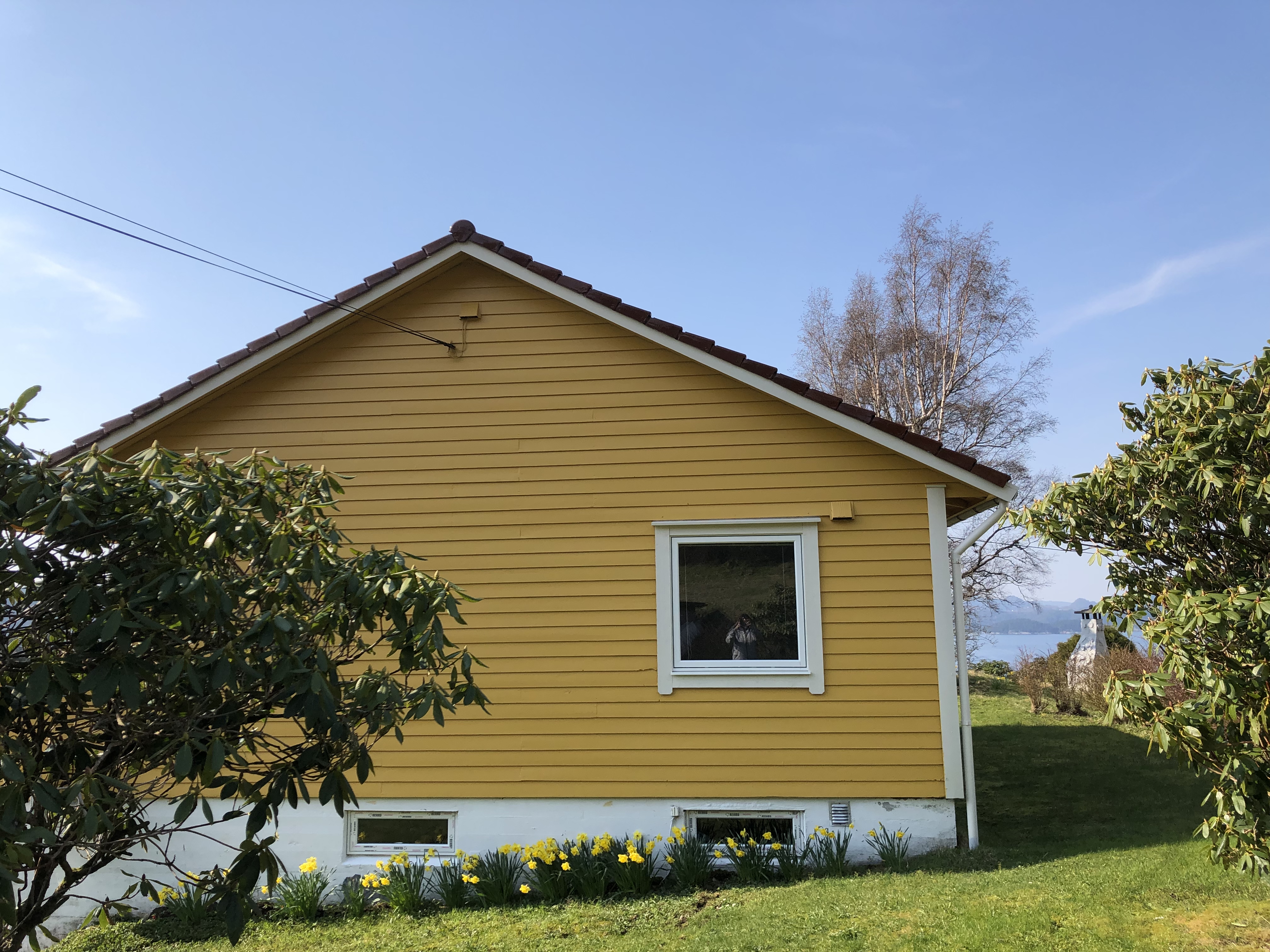 Das Haus (gelb mit rotem Dach) vom Wasser aus