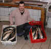 gegen 15.30 jeder 3 Kisten voll mit Dorsch Pollack Schellfisch und Köhler. Was